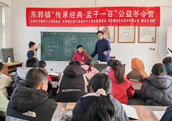 此次冬令营是东郭镇经典诵读传承的生动延续。2025年夏季,该镇红脉传承新时代文明实践站已成功举办为期两个月的“传承经典·论语一百”公益夏令营,为青少年搭建了接触经典的优质平台。2026年寒假,该镇接力启动“孟子一百”冬令营,除固定经典诵读外,还联动市内外志愿服务团队,策划书法、武术、游学等配套活动,让传统文化走出书本、融入实践。