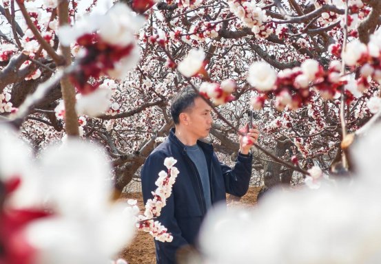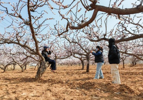 走进黑石岭村杏树林,放眼望去,洁白粉嫩的杏花一团团、一簇簇缀满枝头,千姿百态、争奇斗艳。微风拂过,花枝轻摇,淡淡花香沁人心脾,与青山村落相映成趣,尽显田园诗意,醉了游人,扮靓了村庄。不少游客漫步花海间,用手机、相机定格美好瞬间,或驻足细赏、或结伴留影,尽情感受春日独有的浪漫与惬意。
