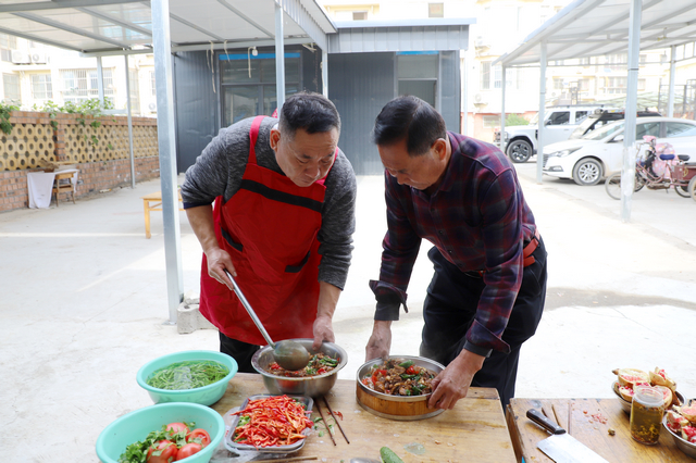 社区和村两委人员,党员代表和志愿者、公益岗早早来到现场,分工协作,和面、调馅、擀皮、包水饺,切菜、配菜、烧火,村党支部书记李其营变身“爱心大厨”,掌勺为老人们准备菜肴……有的志愿者们陪老人们聊天,询问他们的身体状况和生活情况,叮嘱老人们添加义务,给老人们讲新闻和新鲜事儿,欢声笑语中,一个个饱含爱心与祝福的饺子整齐排列开来。