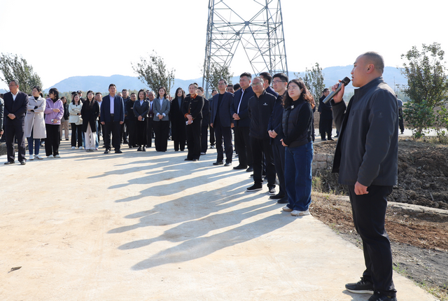 在堌堆社区蔡村村东生产道路修整现场,观摩人员听取了生产路修整和堌堆社区整体工作情况介绍,表示该生产路不仅连通了沟渠,更连通了民心,为村民农业生产、物资运输带来极大便利。