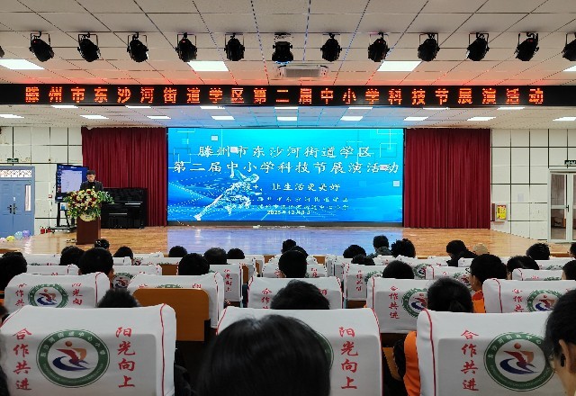 12月3日,东沙河街道学区举办第二届校园科技节。市教育和体育局党组成员、市竞技体校校长王伟,市教育和体育局电教信息科科长宋萍;东沙河街道党工委副书记、办事处主任李彦铮,人大工作室副主任孙伟,学区师生代表参加活动。