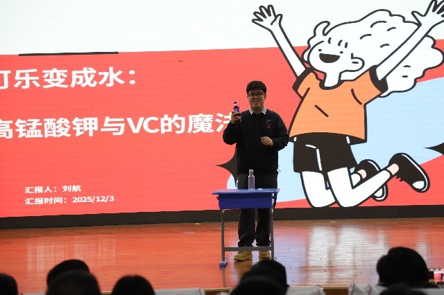 随后,狄腾老师主持科学魔法秀,通过《怒发冲冠 科技无限》《魔力气球圈》《可乐与水的秘密》《马德堡半球实验》等科技展演项目带领大家领略了科学的神奇魅力。