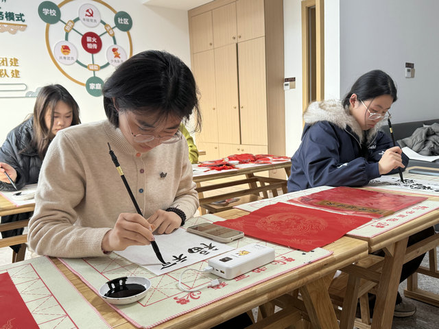 活动现场暖意融融,纸张铺展、笔墨备齐,处处洋溢着喜庆祥和的氛围。参与活动的优徕青年热情高涨,无论是擅长书法的能手,还是初次执笔的新手,都满怀兴致挥毫泼墨。张张红彤彤的福字新鲜“出炉”,墨香萦绕间,不仅承载着浓浓的年味与祝福,更让优徕青年在沉浸式体验中感受传统书法的独特魅力,在互动交流中拉近距离、凝聚共识,切实增强了青年群体的向心力。