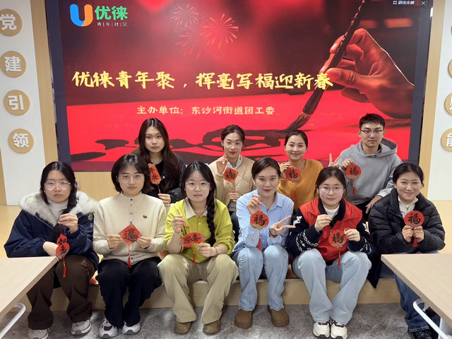 为厚植中华优秀传统文化底蕴,丰富优徕青年精神文化生活,扎实推进青年友好型城市建设,东沙河街道团工委联合尚同社区,组织优徕青年开展“优徕青年聚 挥毫写福迎新春”活动,让青年在笔墨书香中品年味、传文化、聚情谊,以文化赋能增添青年幸福感与归属感。