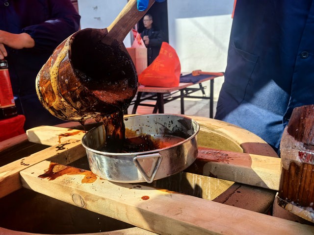 活动现场,非遗展示摊位依次排开,剪纸、葫芦烙画、面塑、糖画、木板年画、鼎盛酱油食醋、洪山前小磨香油、侯三元刀剪等非遗项目集中亮相,传承人现场展示非遗技艺,吸引众多市民动手体验,糖画现场的孩子们更是目不转睛、跃跃欲试;年货大集区域同样热闹非凡,从糕点、干货到春联、灯笼、碗筷等节日用品一应俱全。此外,戏曲展演、书法家送春联、“光影新城”摄影展等配套活动同步开展,为市民提供了丰富多彩的文化体验。