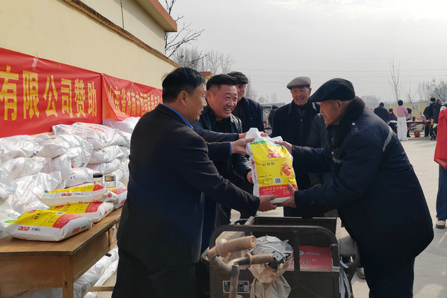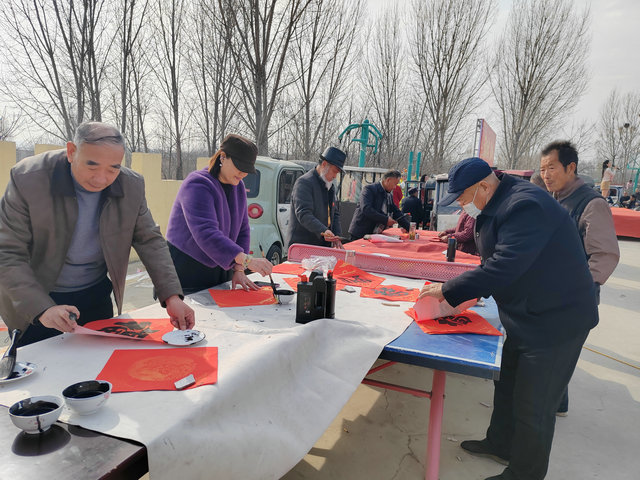 为了让乡亲们过个热闹年,村级爱心村民唯根斯种业公司经理马杨、山东省济南市恒固电器有限公司经理马强、滕州市玉廷商贸有限公司颜廷、滕州市禧尚婚庆庆典许超为村级困难户送来了新年的美好祝福和承载着爱心的新春物资。邀请山东省老年书画研究会滕州市会书法家们现场挥毫泼墨,将火红的春联送到村里家家户户,让乡亲们在浓浓年味里共享文化大餐,志愿者穿梭在人群中,不时帮着备墨、晒联。