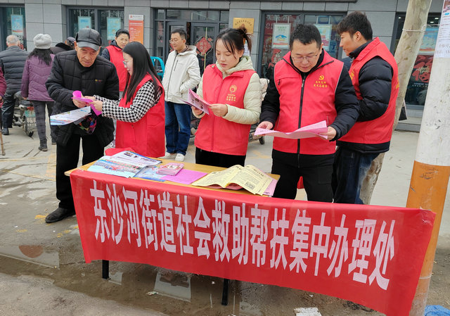 为做好社会救助政策宣传,提高群众对社会救助政策的知晓率,3月3日,东沙河街道组织民政事务岗、社会工作岗等志愿者在东沙河大集开展了“社会救助集中帮办日”宣传活动。