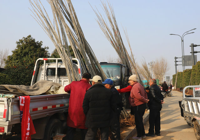 在树苗售卖摊位前,往来群众络绎不绝,询价、挑选、咨询养护技巧的声音此起彼伏,不少群众手里提着选好的杨树苗、桃树苗,脸上满是期待。