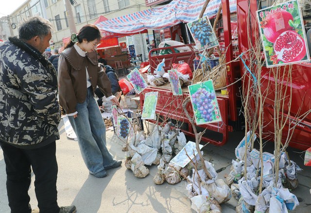 刚迈步进集市,一股清清爽爽的草木香就迎面扑来,混着不远处的瓜果香,让人一下子就感受到春天的味道了。苗木摊位一字排开,一眼望不到头,各类树苗整齐陈列,引着四邻八乡的老百姓往这儿凑。“过来看看喽!本地的枣树苗,实打实的好苗子,今年栽上,明年就能结果……”“月季、木槿、桂花啥都有,自家育苗,好养又好看,快来看一看啦!” 商贩们扯着嗓子吆喝,嗓门洪亮,隔着老远都能听见,买苗的人忍不住停下脚,凑过去问问价、看看苗。
