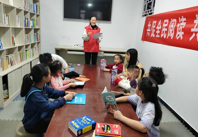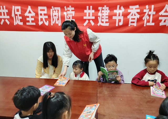 活动中,志愿者带领孩子们诵读经典古诗词,并通过诗词接龙的趣味形式,指导孩子们背诵《春晓》《静夜思》《游子吟》等启蒙诗篇,孩子们踊跃参与、积极应答,现场气氛热烈。随后,志愿者为孩子们发放了书籍。让孩子们一起阅读、分享感悟,在琅琅书声中感受中华经典诗词的韵律之美。