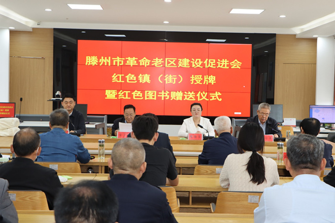 会上,市革命老区建设促进会副会长黄有水宣读了《滕州市革命老区建设促进会关于对大坞镇创建红色镇情况进行评估认定的通知》;市革命老区建设促进会宋子浩会长为大坞镇授予“红色镇(街)”牌匾,并赠送红色图书。