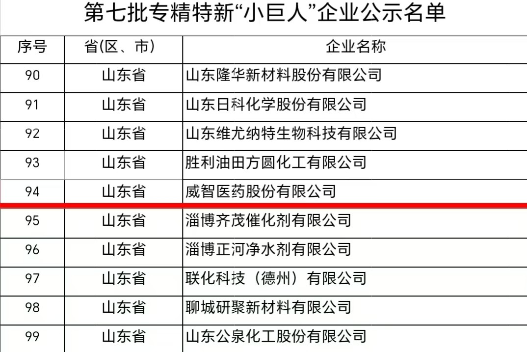 近日,国家工信部对专精特新“小巨人”企业拟认定名单和拟通过复核企业名单进行公示,大坞镇威智医药企业入选拟认定名单。专精特新“小巨人”企业是专注于细分市场、创新能力强、市场占有率高、掌握关键核心技术、质量效益优的排头兵企业,是我国制造业高质量发展的重要支撑力量。