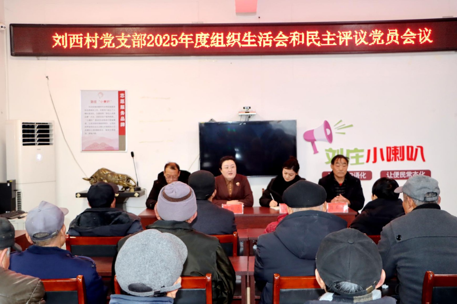 1月30日,大坞镇党委书记傅焕青参加了刘西村党支部2025年度组织生活会和民主评议党员会议。