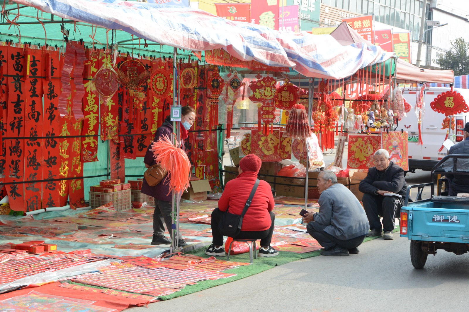 临近春节,大坞镇已然被浓浓的年味包裹。集市上,红底金字的春联、寓意吉祥的福字挂满了集市两侧摊位,成为集市里最亮眼的风景,吸引着络绎不绝的村民前来选购,提前定格新年的幸福模样。