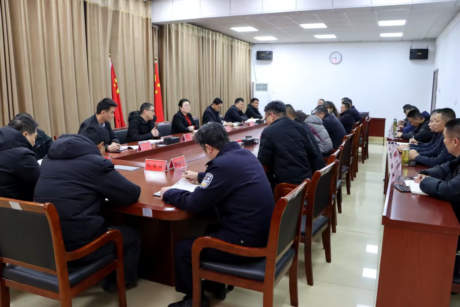 新春伊始,年味正浓。2月21日凌晨5:30,大坞镇在三楼会议室召开重点工作会议。镇相关领导干部、各办事处总支书记以及派出所、司法所、市场监管所、综合执法、综治办、信访办、环保所、应急办、环卫所、林业站、执法办等部门负责人参加会议。