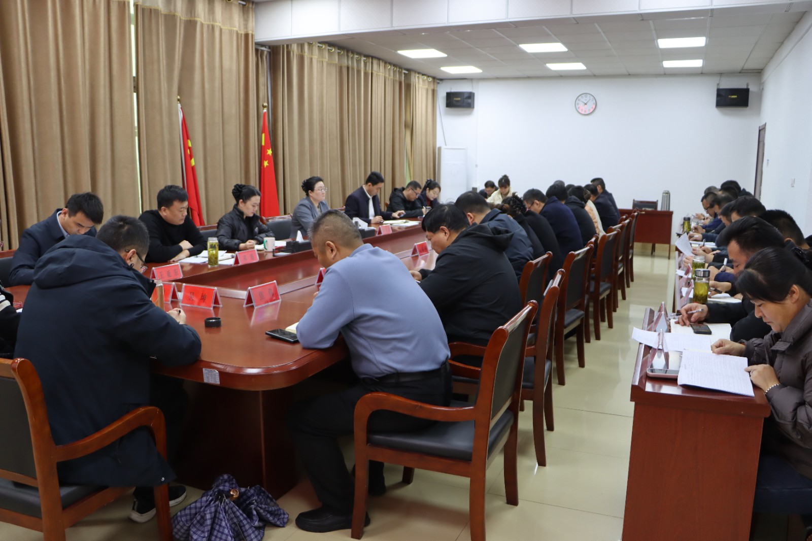 会上,镇党委委员、纪委书记、派出监察室主任王鑫同志传达了中央和省市关于群众身边不正之风和腐败问题集中整治相关精神;镇党委副书记、政法委员陈超就做好全镇信访维稳工作进行了具体安排;党委副书记、镇长吕文琦对当前经济运行、重点项目建设、烟花爆竹打非治违、环境卫生、基层矛盾排查化解、安全生产、值班值守等重点工作作出具体安排部署。