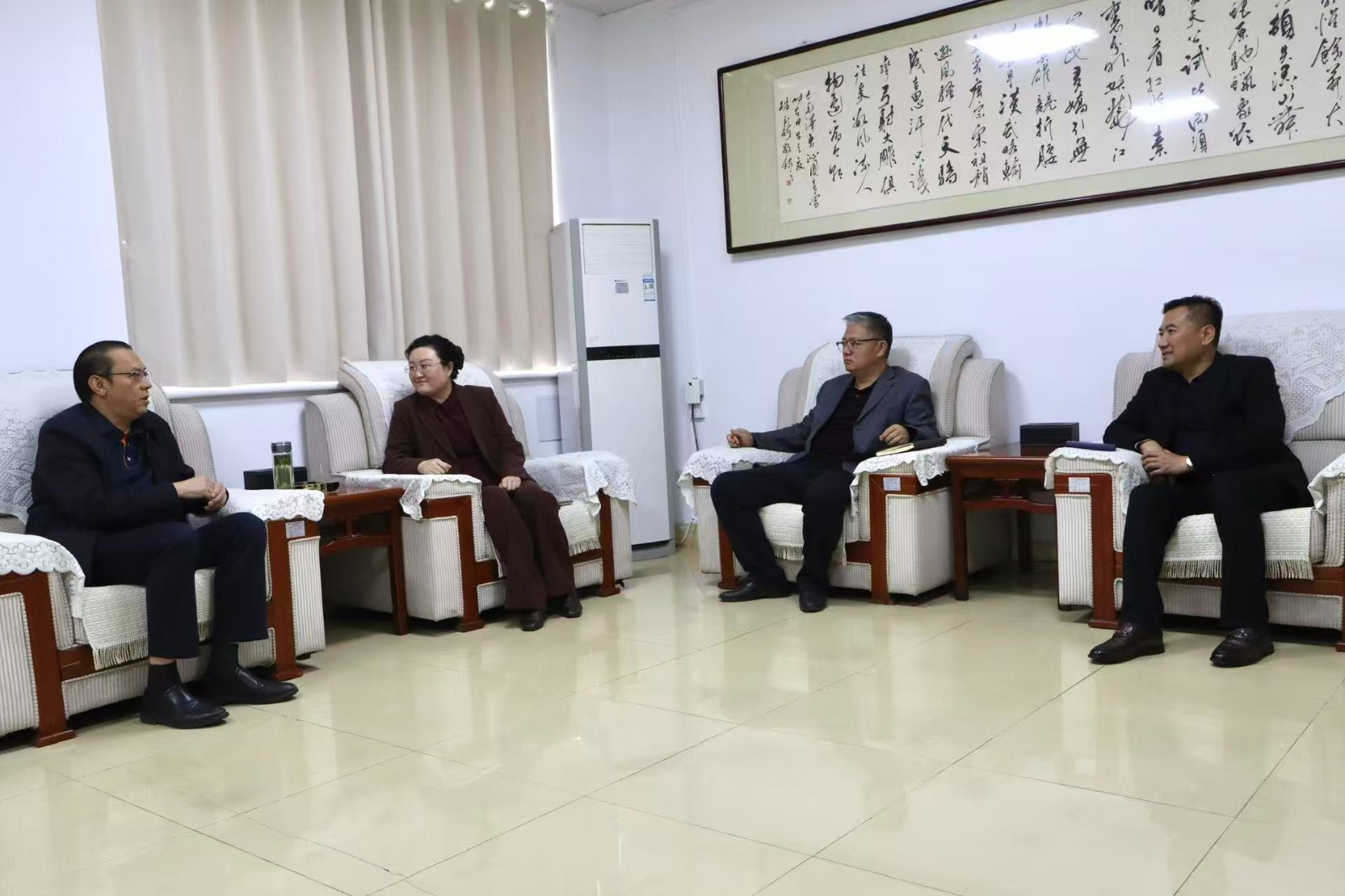 随后,在镇二楼接待室举行座谈,双方围绕马铃薯产业发展、产销对接、品质提升等方面进行友好交流。傅书记介绍了大坞镇马铃薯产业发展基础、种植规模及品牌优势,表示将以此次对接为契机,进一步畅通销售渠道,推动优质马铃薯直供深圳、香港市场,切实把产业优势转化为市场优势、增收优势。