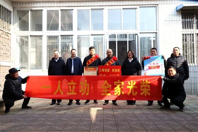 现场为荣立三等功的军人亲属送上立功喜报和慰问金,并详细询问了其生活情况,感谢他们为国家培养了优秀军人,为部队送去了优秀人才,为家乡赢得了荣誉,希望他们一如既往支持和鼓励军人安心部队服役,争取再接再厉、再创佳绩。