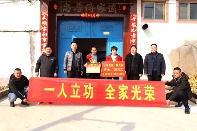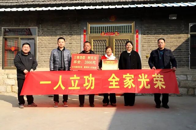 2月26日,滕州市退役军人服务中心副主任郭焱一行来官桥镇为三等功臣顾兴家、时文习送喜报。官桥镇副镇长闵洁等同志参加活动。