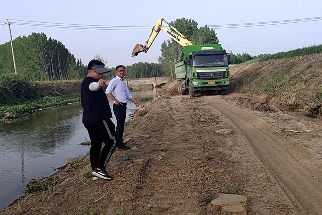 镇党委副书记、政协工作室主任孙延峰到官桥总支督导河道清淤工作。