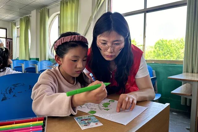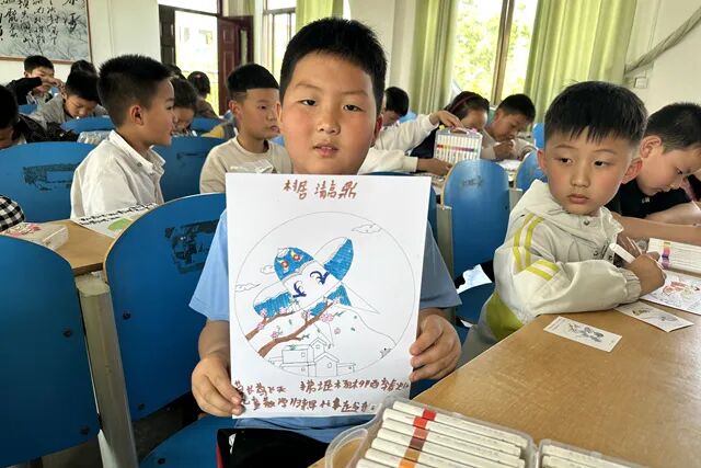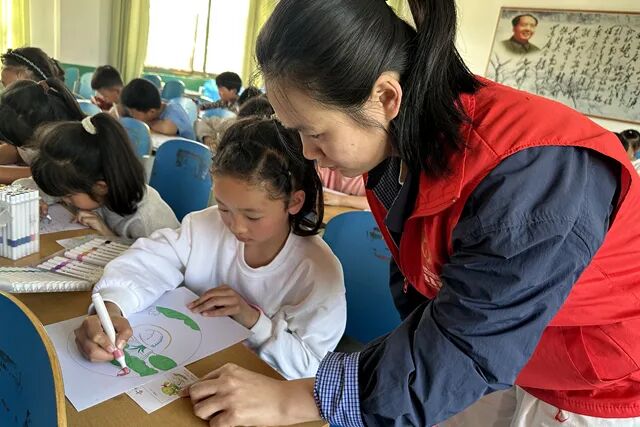 随后,在志愿者的指导下,学生们从《咏柳》《悯农》等经典诗词中选题,通过绘画展现诗句中的意境。有的以水墨丹青勾勒“接天莲叶无穷碧”的夏日荷塘,有的用彩铅描绘“儿童散学归来早”的童趣场景。孩子们将文字转化为色彩与线条,既加深了对古诗文的理解,又激发了艺术创造力。活动通过创意海报赏析、古诗词配画等环节,将绿色阅读与传统文化教育深度融合,为孩子们打造了一场别开生面的文化盛宴。