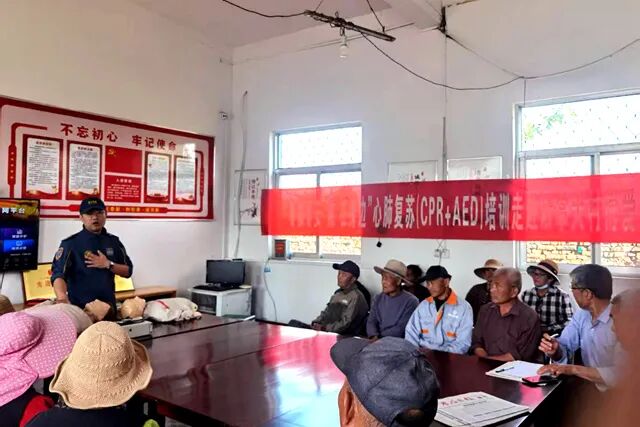 为打造强有力的基层红十字队伍,普及应急救护知识,筑牢人民群众生命健康安全屏障,4月29日上午,官桥镇在后掌大村博爱家园,面向红十字志愿者、公益岗、部分热心群众开展了“枣救枣安 ‘救’在身边”心肺复苏(CPR+AED)培训活动。