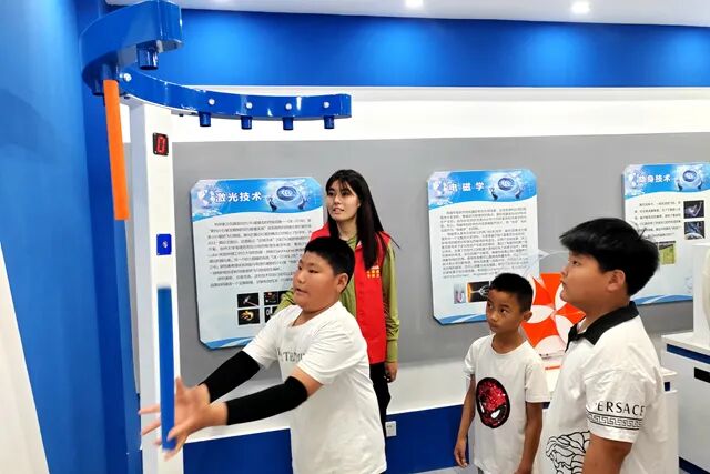 科普馆的体验则点燃了孩子们的好奇心。在声光电交织的科技展区,学生们兴致勃勃地操作起喊泉、大象钻洞、极速反应等一系列趣味互动装置,探索科学奥秘。现场惊叹声与欢笑声此起彼伏,孩子们在这些妙趣横生的实验中,亲身体会了声学、光学、神经反应等科学原理的魅力,激发了对科学世界的浓厚兴趣和对未来的无限畅想。
