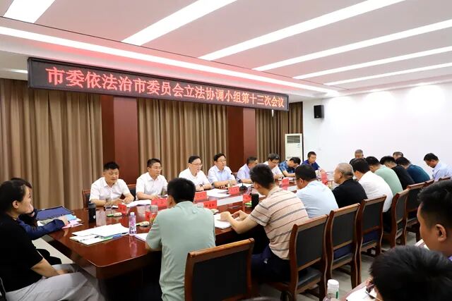 6月18日,市委全面依法治市委员会立法协调小组第十三次会议在官桥镇召开。市人大常委会副主任、市委全面依法治市委员会立法协调小组组长孙剑出席会议并讲话。市人大常委会委员、市人大监察和司法委员会副主任委员周茂林,市人大常委会法制工作委员会副主任杨国桢出席会议。市司法局党组书记、局长,市委全面依法治市委员会立法协调小组副组长吕卫民主持会议,官桥镇党委书记丁加水致辞。