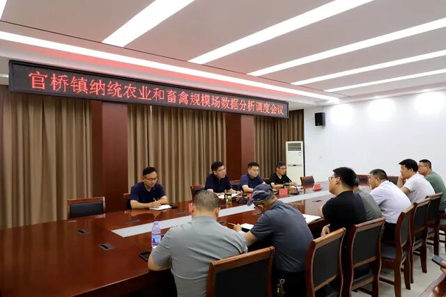 6月21日,官桥镇在镇四楼会议室召开纳统农业和畜禽规模场数据分析调度会议。党委副书记、镇长杨磊主持会议并讲话。党委委员、副镇长张化冰,副镇长龙景周,社会事务管理办公室副主任董坦坦,相关岗位负责同志参加会议。