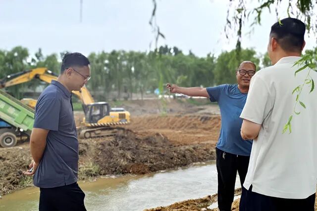 副镇长龙景周督导河道清淤收尾和收方工作。