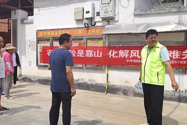 中华联会财产保险公司来官桥镇入村宣传2025年玉米完全成本投保政策。
