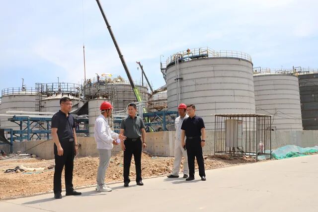 丁加水、杨磊一行先后到高性能连续法聚醚多元醇装置、天然气制氢装置项目等地,现场听取项目推进工作汇报,实地察看建设进度,详细了解项目建设梗阻,并进行现场办公。