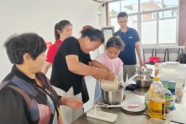 “老师,为什么我的蛋糕烤出来总是塌陷回缩?”培训中,年轻宝妈闵跟娣指着自己的蛋糕胚请教。烘焙老师随即详细分析了可能的原因,如蛋白打发不足、翻拌过度导致消泡、或出炉后未及时倒扣等,并现场示范正确操作手法。学员们从基础的蛋黄糊调制、蛋白霜打发以及烘焙的温度、时间设置等关键步骤认真地学习、讨论。20分钟后当香喷喷的戚风蛋糕从烤箱里端出来后,大家争相品尝。61岁的闫丽阿姨尝到软绵香甜的戚风蛋糕后,兴奋地说到:“以前只会蒸馍做家常菜,没想到我也能学会做这么好看的蛋糕,掌握了技术,给家人做点心或者增加份收入都更有信心了!”