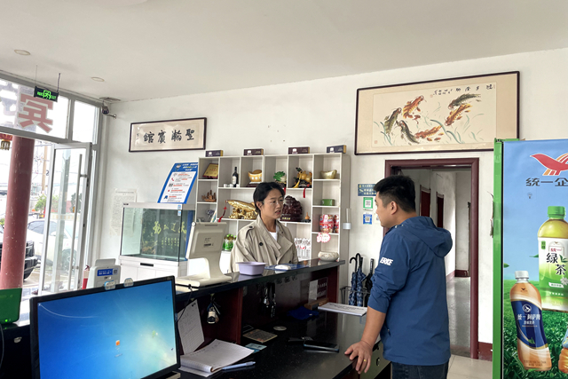 公共文化服务中心主任薛淑雅督导辖区宾馆旅游住宿业人数增长情况。
