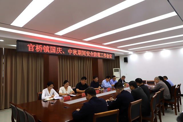 9月30日,官桥镇在镇四楼会议室召开国庆、中秋假期安全防范工作会议。党委副书记、镇长杨磊主持会议并讲话。镇领导朱思涛、夏魁、龙景周、闵洁、陈子君、马腾飞、薛淑雅;相关部门负责人等同志参加会议。