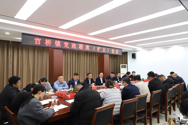 1月26日,官桥镇在四楼会议室召开党政联席(扩大)会议。党委书记刘涛主持会议并讲话。全体领导干部,各党总支书记,相关部门负责同志参加会议。
