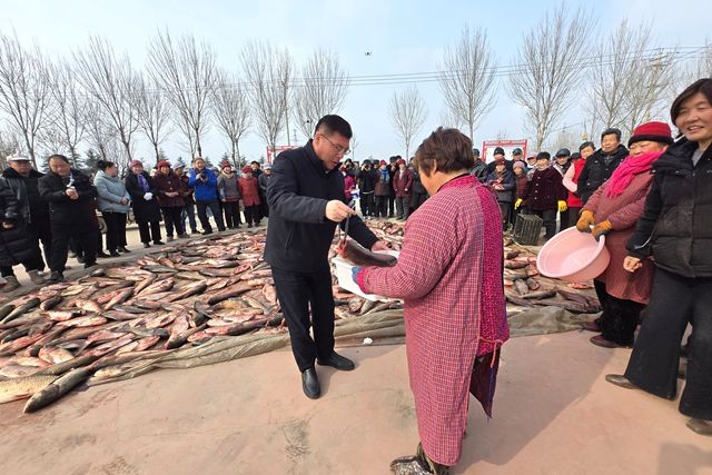 “年年有鱼增富贵,岁岁平安添吉祥。”2月10日,在新春佳节即将到来之际,官桥镇史庄村的“共享鱼塘”迎来了首次开塘,全村229户60岁以上老人喜领4000余斤“年鱼”福利,用生态红利点亮村民幸福年。