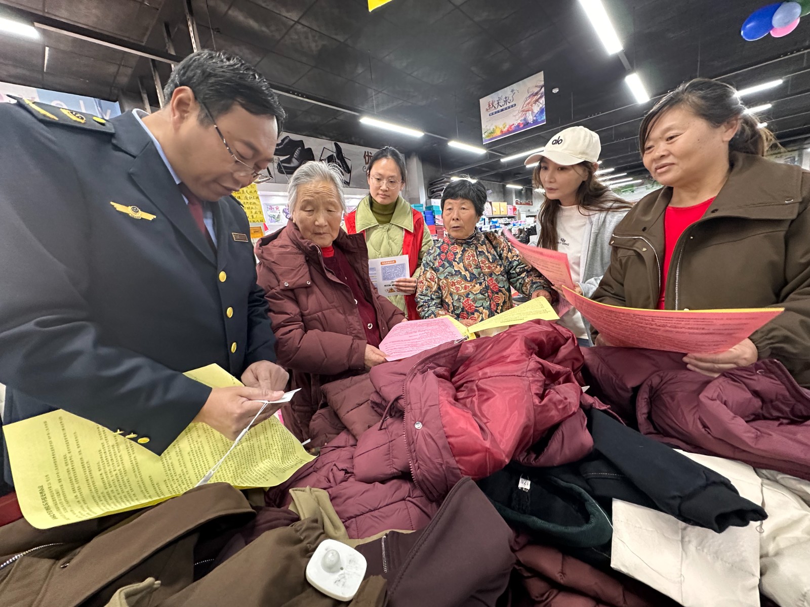 活动现场,志愿者在辖区大型超市、商铺、社区服务中心等人员密集区域设立普法咨询台,悬挂宣传横幅、发放《消费者权益保护法》《食品安全法》《民法典》维权节选及消费维权明白纸等资料,以“以案释法+现场答疑”的形式,用通俗易懂的语言讲解消费者享有的安全保障权、知情权、公平交易权、求偿权等核心权利,重点解读网购维权、假冒伪劣识别等群众关心的热点内容。针对老年群体易陷入保健品诈骗、免费礼品陷阱等问题,志愿者专门拆解典型套路,提醒老年人不轻信、不转账、留存凭证;面向农户普及农资产品识假辨假与维权要点,守护春耕生产消费安全。