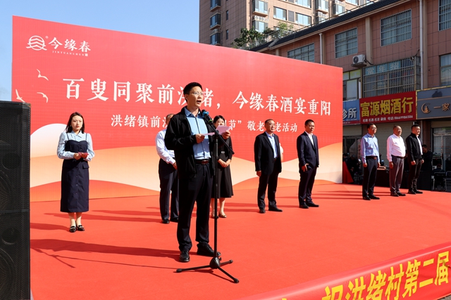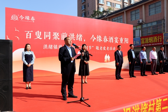 重阳佳节赏秋景 尊老爱老情意浓。10月11日,洪绪镇前洪绪村举办“重阳节”敬老爱老活动。市民政局党组成员、副局长王有成;洪绪镇党委书记张波,人大主席、总工会主席、关工委主任渠怀建,副镇长赵丽丽,山东今缘春酒业酿酒公司总经理罗毅,前洪绪村党支部书记赵恒强,相关岗位负责同志及有关部门工作人员参加活动。便民和公共文化服务中心主任刘华主持活动仪式。