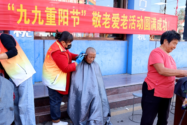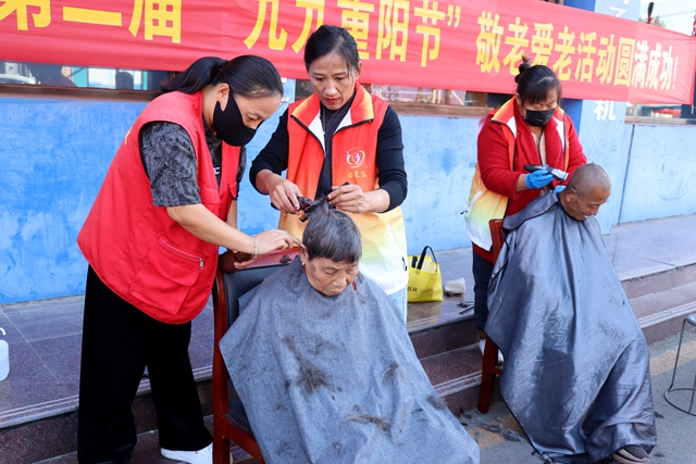 活动现场热闹非凡,前洪绪村400余位70岁以上的老人欢聚一堂,同赏文艺节目,共品重阳午宴,欢度重阳佳节。老人们围坐在一起,回忆从前往事,聊聊当下近况。“现在生活真是越来越好,免费理发、看演出、有饭吃,这样的活动非常暖心。”在一旁的义剪现场,刚刚剪完头发的李大爷高兴地称赞道。