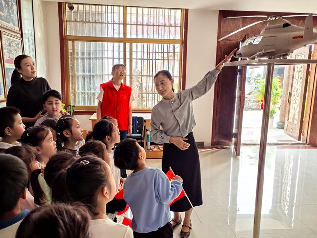 活动中,志愿者用生动通俗的语言,结合老照片、实物展品,向孩子们讲述革命先辈的革命历程与爱国故事。孩子们认真聆听,不时驻足观察,在触摸历史痕迹、感受英雄事迹的过程中,对 “爱国” 有了懵懂而深刻的认知。