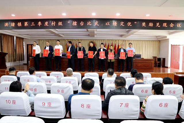10月9日,洪绪镇在北二楼会议室召开第三季度村级“擂台比武·以绩定优”奖励兑现会议。全体领导干部、全体机关干部,市派“第一书记”,各村党支部书记、主任参加会议。镇党委副书记殷允昌主持会议。
