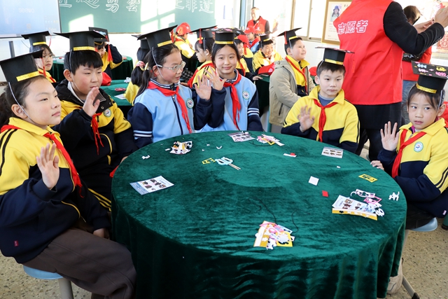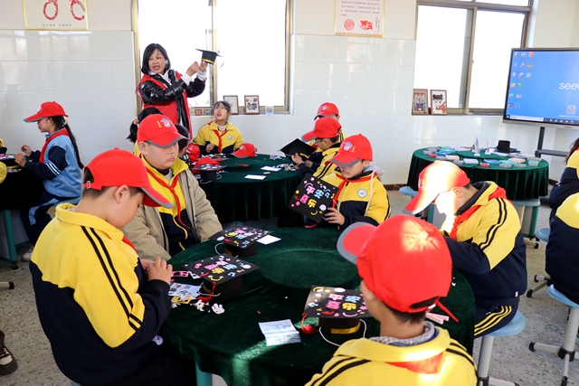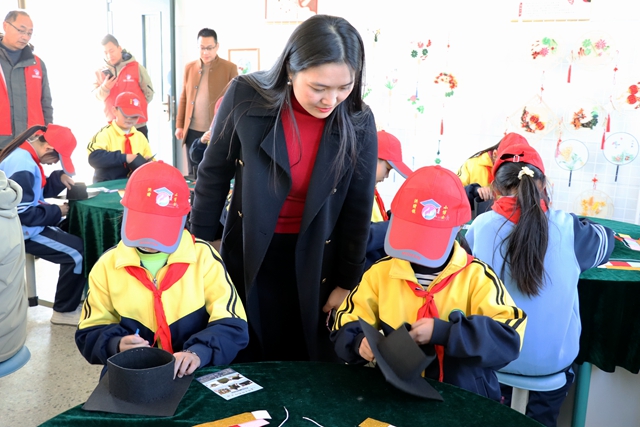 活动伊始,老师们播放家乡博士祝福视频,真挚寄语让学生们备受鼓舞,并现场邀请孩子们分享感悟。在手工制作环节,志愿者分组协助部分学生制作博士帽,大家动手实践、互相展示,现场欢声笑语不断;另一部分学生提笔给博士书写回信,写下他们最想说的心里话。最后,学生代表为大家朗读博士致信,字里行间满是对少年成长的期盼,学生们把写好的回信交给老师代转,为活动画上圆满句号。