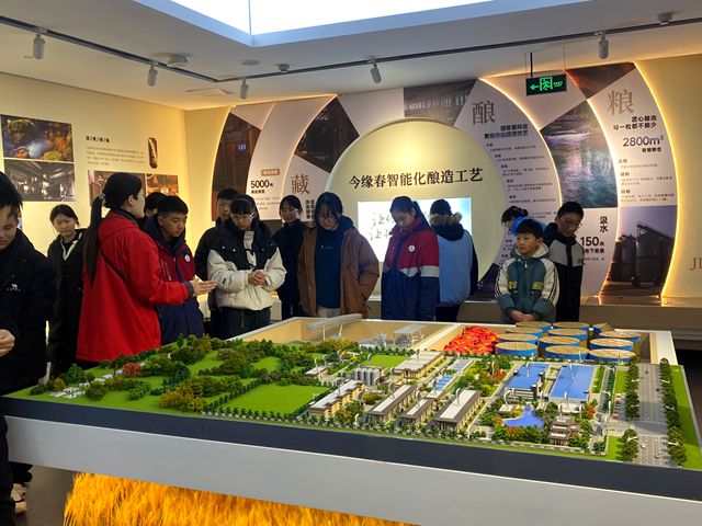 在今缘春酒业工作人员的热情引导下,孩子们先后参观了酒文化博物馆、生态酿酒车间、陶坛酒库等区域。在酒文化博物馆内,一件件承载着岁月记忆的酿酒老物件、一幅幅记录企业发展的历史图片,让孩子们直观了解到今缘春历经六代传承,发展成为现代化白酒企业的百年历程。工作人员重点讲解了企业非遗酿造工艺“吴派老五甑”的独特魅力,以及52度善国酒荣获比利时布鲁塞尔国际烈性酒大奖赛大金奖的辉煌成就,让孩子们深切感受到本土品牌的匠心与实力。