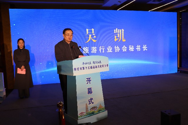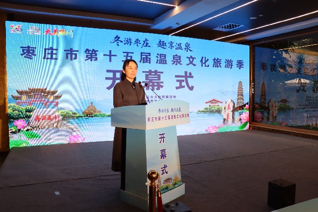 12月31日,“冬游枣庄·趣享温泉”枣庄市第十五届温泉文化旅游季开幕式在洪绪镇新盈泰温泉度假村隆重举行。山东省旅游行业协会秘书长吴凯,山东省旅游行业协会温泉分会会长郭伟全;枣庄市文化和旅游事业发展中心副主任王炜燕;滕州市政府副市长马金安,市政协副主席孔磊,市文化和旅游局党组成员、副局长张崇辉,枣庄各区及高新区文旅部门分管负责人以及洪绪镇党委书记张波,党委副书记、镇长彭程出席开幕式。山东美铭集团董事长王志强,山东美铭集团副总经理、山东新盈泰温泉度假村总经理王硕,滕州市宝丽格婚嫁艺术中心总经理赵军,全市各镇街分管负责同志以及滕州市部分景区和文旅企业负责人,各级新闻媒体记者,文旅推介官代表参加活动。开幕式由滕州市文化和旅游局、广播电视局、文物局局长王茜主持。
