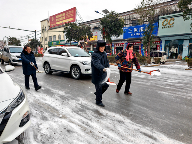 降雪后,为应对寒潮雨雪天气的影响,保障道路畅通和出行安全。洪绪镇迅速部署、快速行动,第一时间组织环卫工人、交警全员上阵开展除雪保畅作业。大家手持扫帚、铁锹等工具,重点对主次干道、公交站点、村口要道等区域集中清扫积雪,同步在易结冰路段撒盐化冰,全力消除道路安全隐患。