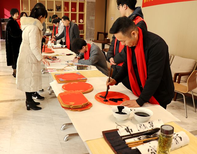 镇总工会、文化旅游岗、新时代文明实践所、团委等多部门组织书法名家们开展“迎新春 送万福 进万家”文化惠民活动。书法家们挥毫泼墨,笔走龙蛇,一幅幅寓意吉祥的春联、一个个遒劲有力的福字跃然纸上,现场免费赠送给群众。墨香与年味相融,祝福与温情相伴,既传承中华优秀传统文化,又把新春美好祝愿送到千家万户,提升群众文化获得感与幸福感。