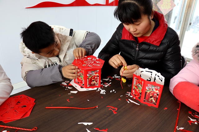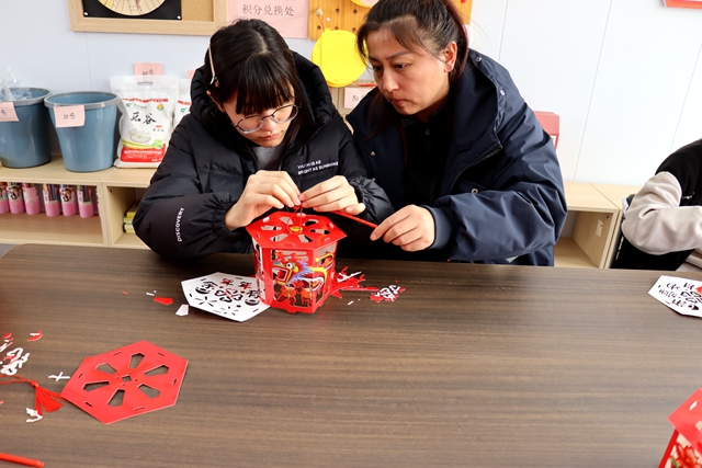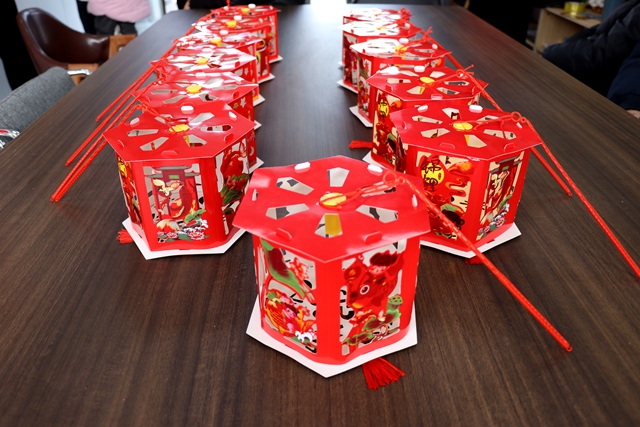 活动设置做灯笼、猜灯谜、吃元宵三大环节。在灯笼制作区,工作人员与志愿者提前备好灯笼制作材料,详细讲解元宵节赏灯习俗、灯笼的吉祥寓意,以及折叠、组装、粘贴、装饰的完整流程。村民们热情高涨,老中青幼齐上阵,充分发挥想象力与创造力。不一会儿,一盏盏造型精美、寓意美好的灯笼陆续亮相,红红火火,新意十足。