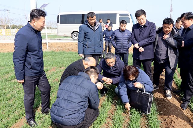 专家组一行先后来到洪绪镇郝洼村高标准农田种植基地、小麦吨半粮创建示范县洪绪镇示范区-滕州牧羊人家庭农场,走进田间地头,实地察看小麦苗情、墒情、病虫草害发生情况,与种粮大户深入交流,重点围绕春季田间管理、科学水肥运筹、病虫害绿色防控、防灾减灾等关键环节进行现场指导,针对性提出技术措施和管理建议,切实为当前小麦生产解难题、传技术、促提升。