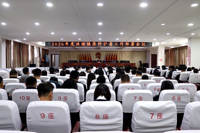 4月13日,洪绪镇在北二楼会议室召开2026年度禁种铲毒工作部署会议。全体领导干部、全体机关干部,各村党支部书记、主任参加会议。镇党委副书记殷允昌主持会议。
